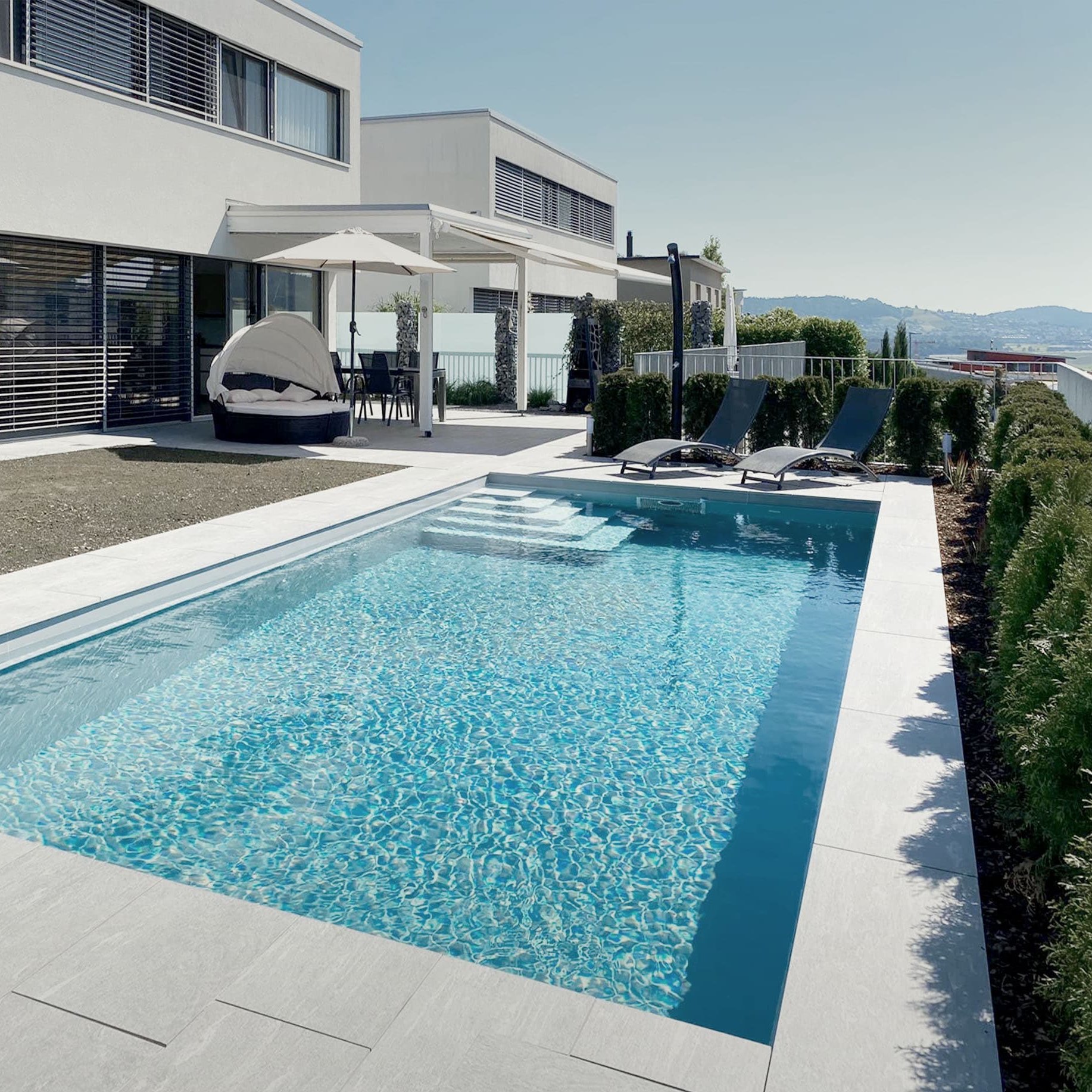 Hier treffen jahrzehntelange Erfahrung auf modernste Technologie. Absolute Dichtheit und Langlebigkeit sind garantiert. Das pflegeleichte Polyfaser-Becken aus Glasfaser-Kunststoff (GFK) bietet eine grosse Formen- und Farbenvielfalt und lässt sich schnell realisieren. Aufwändige Handarbeit zu einem unschlagbaren Preis.