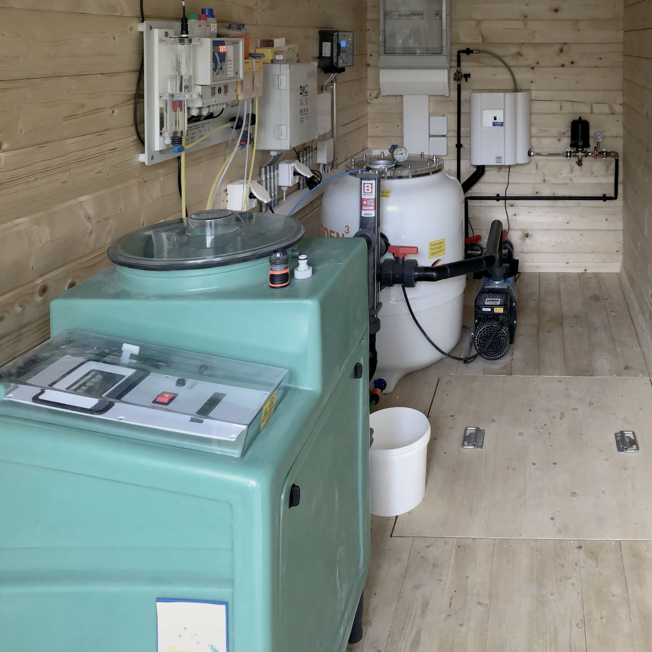 Die Wasserreinigungsanlage sorgt für klares und sauberes Badewasser. Insbesondere bei Temperaturen über 20 °C ist eine permanente Wasserumwälzung äusserst wichtig. Dazu empfehlen wir den Einsatz einer drehzahlveränderlichen Umwälzpumpe sowie Sandfilter mit Düsenböden. Auch dem Filtermaterial kommt eine grosse Bedeutung zu, damit sich kein Nährboden für Bakterien entwickelt, der wiederum den Einsatz von mehr Desinfektionsmitteln erfordert. Mit Glasperlen sind Sie da auf der sicheren Seite.